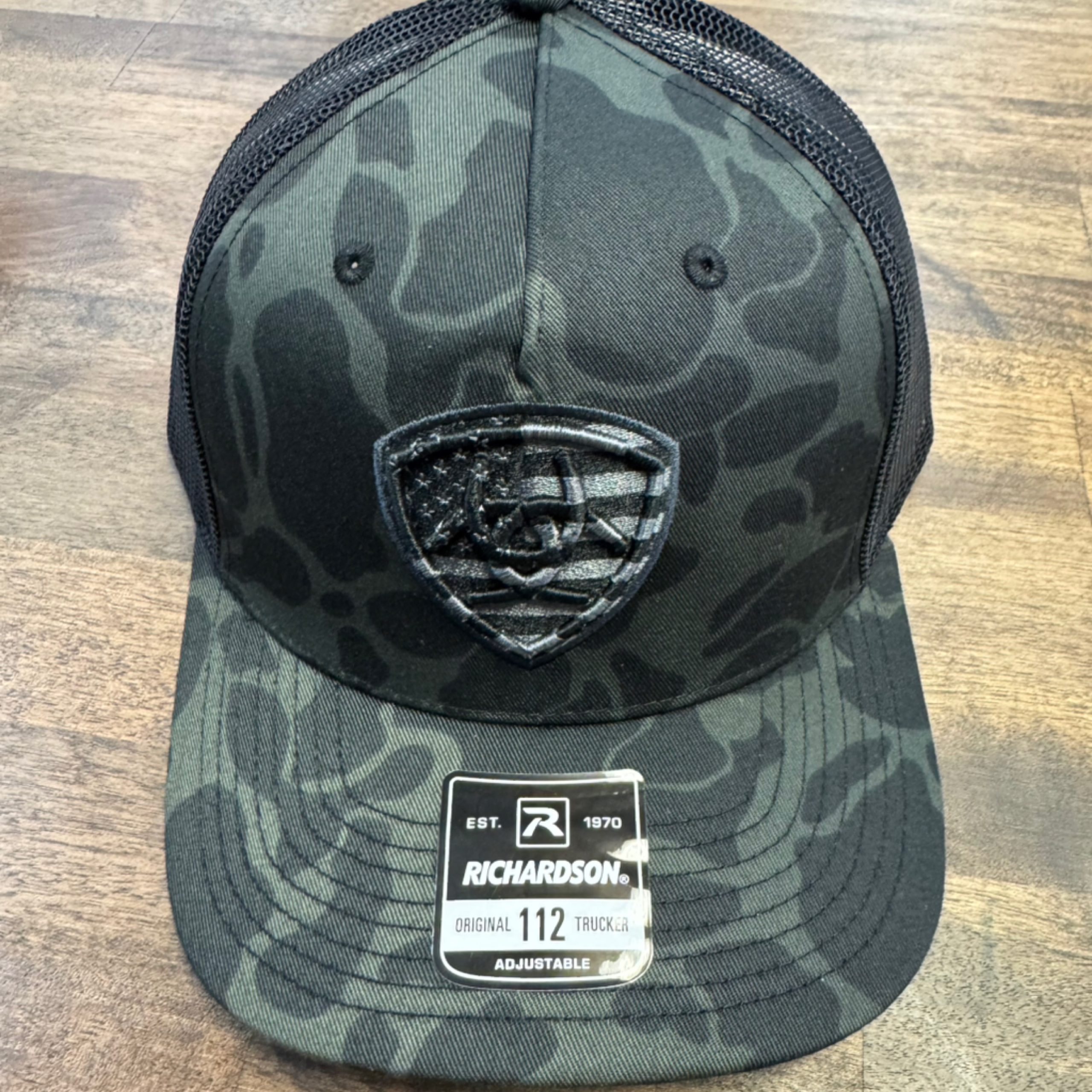 ARIAT Mens Camo American Flag Shield Logo Trucker Cap