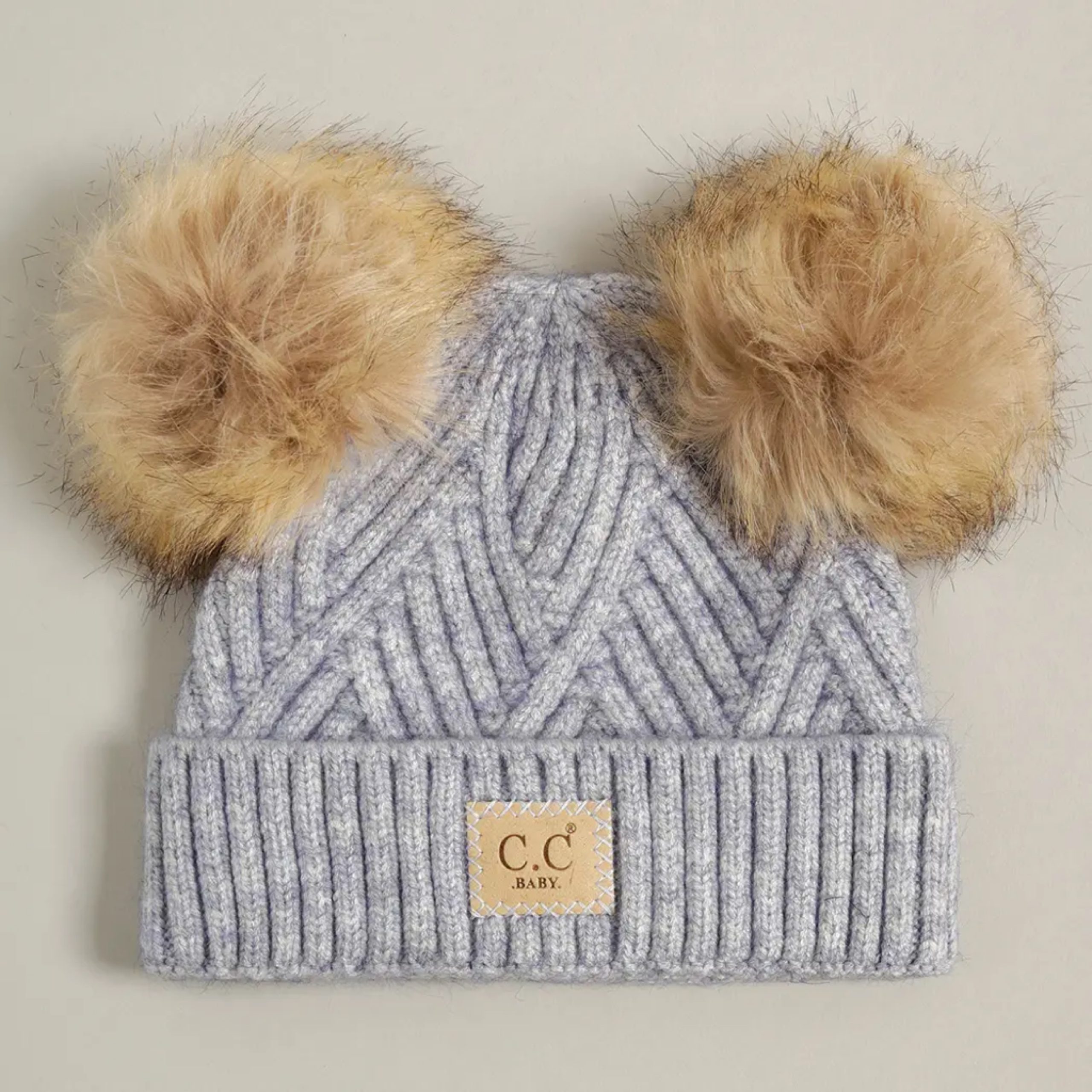 Baby Criss-Cross Beanie with Double Pom-Pom-Blue