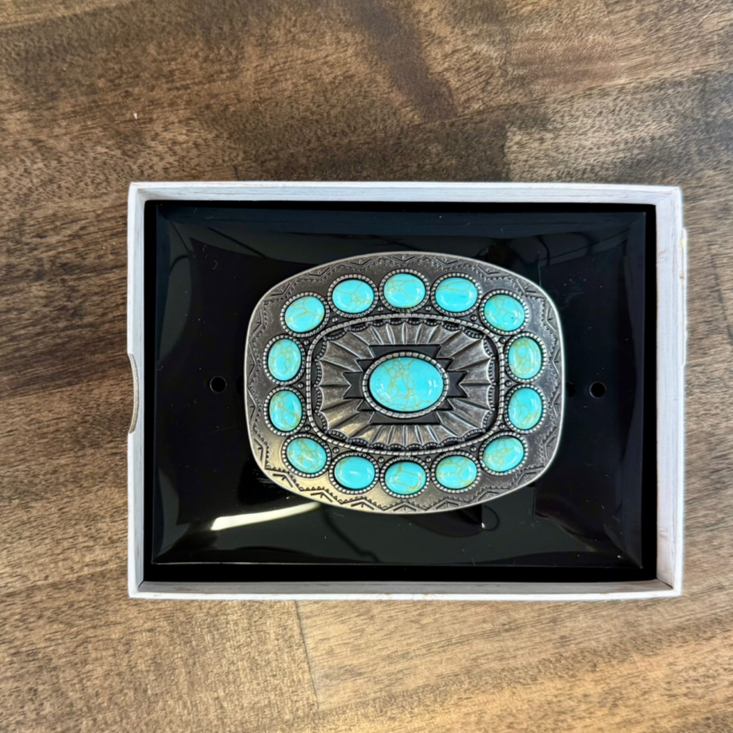 Blazin Roxx Western Womens Belt Buckle Rectangle Turquoise Stones Silver 37903