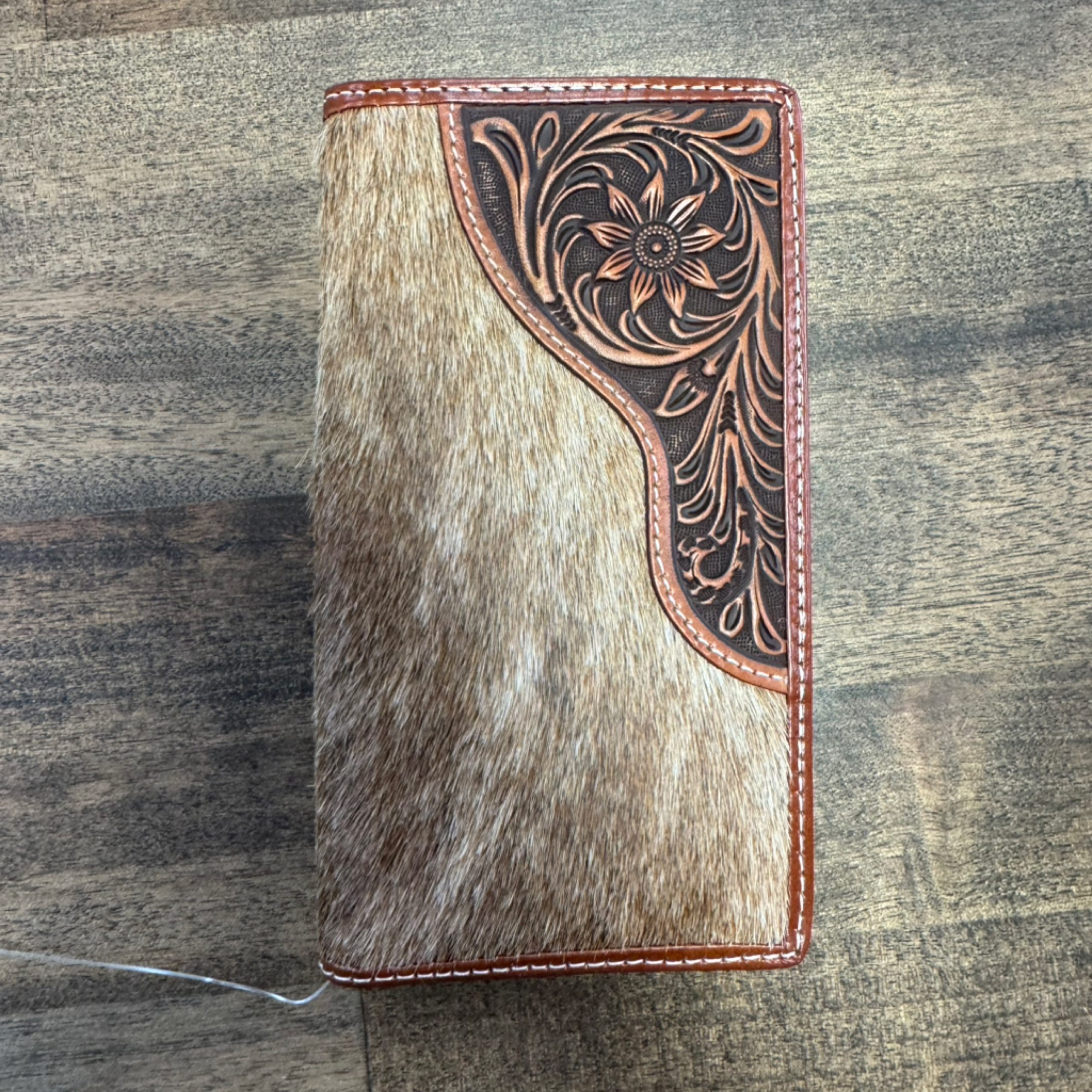 Nocona Rodeo Calf Hair Tooled Tab Wallet