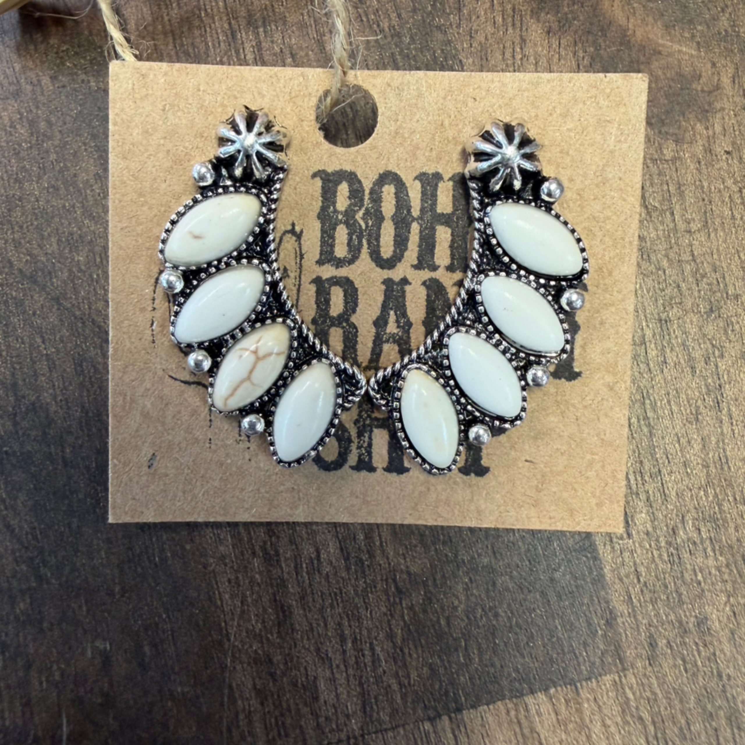 Western Concho Semi Stone Stud Earrings