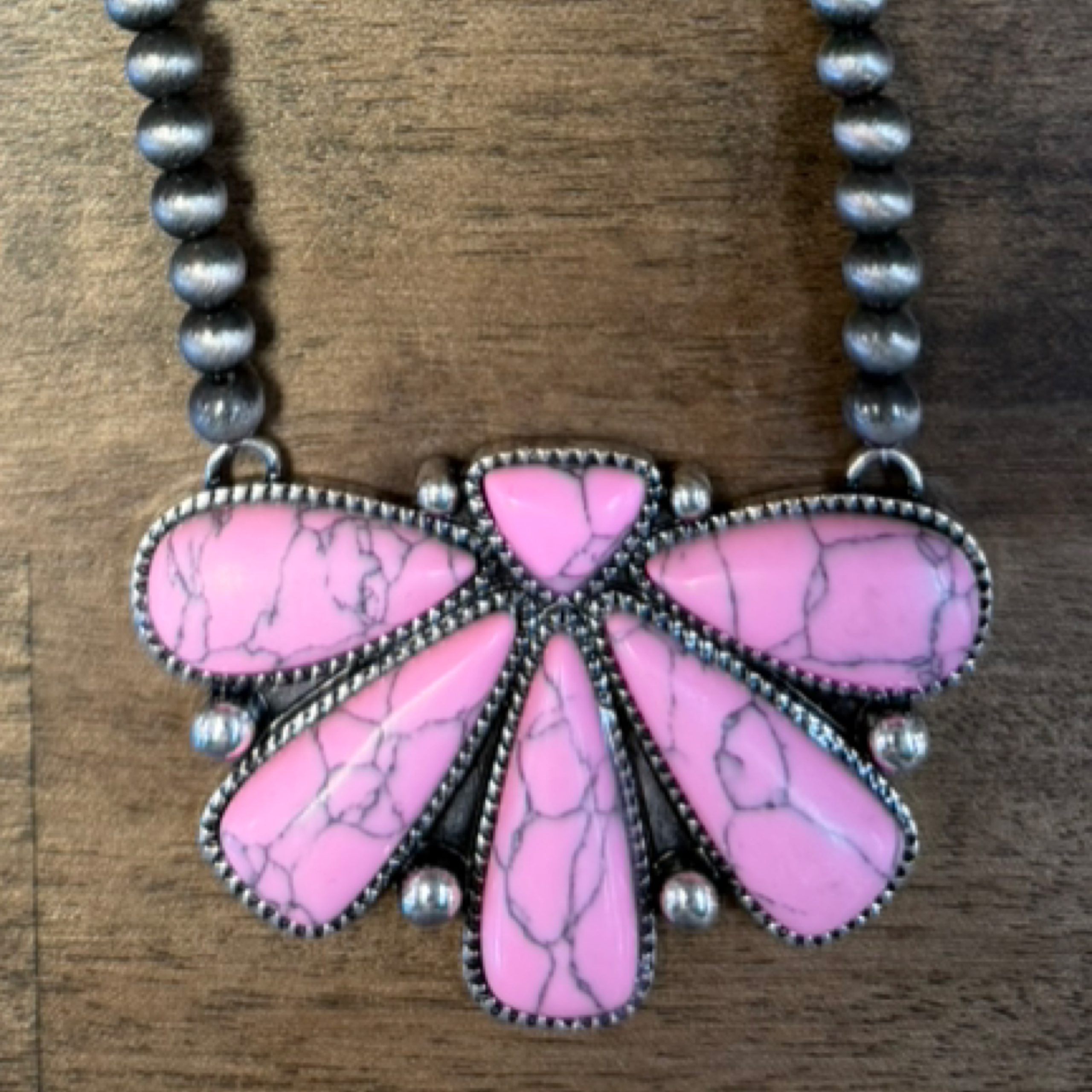 Western Squash Blossom Pendant w/ Navajo Pearl Bead Necklace